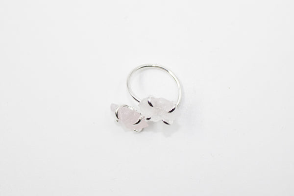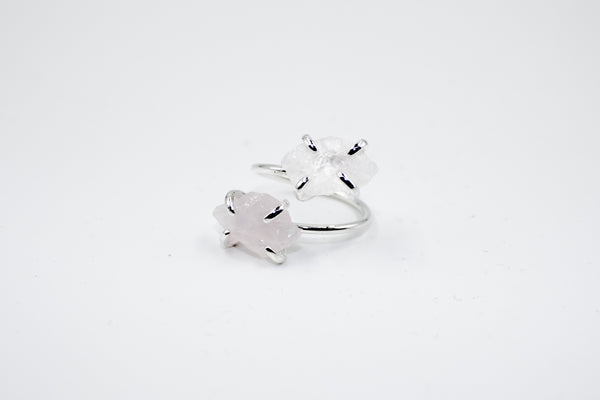Subtile et envoûtante, Arcane II est une bague ajustable en laiton argenté, ornée de deux quartz roses en face à face. Inspirée du lien entre deux êtres, cette bague "toi et moi" incarne la douceur des connexions sincères et la force de l’amour qui guérit.