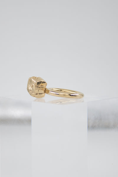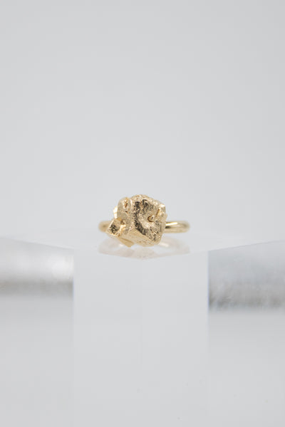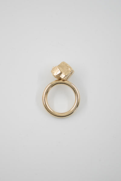 Chaque détail de cette pièce unique, taille 51, reflète la liberté et l’insouciance des moments ludiques, tout en conservant une élégance contemporaine. L’association de la chaleur du métal doré et de la texture brute de la pyrite en fait un bijou vivant, chargé de sens et de vitalité.
