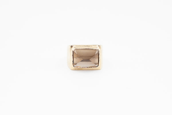 Base laiton et cuivre doré à l'or fin 3 microns, pierre taille émeraude en quartz fumé.