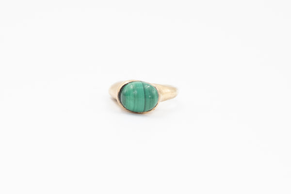 Pensée pour se porter à l’auriculaire, cette bague en argent ornée d’une malachite (taille 45) s’adapte à tous les doigts selon vos envies.
